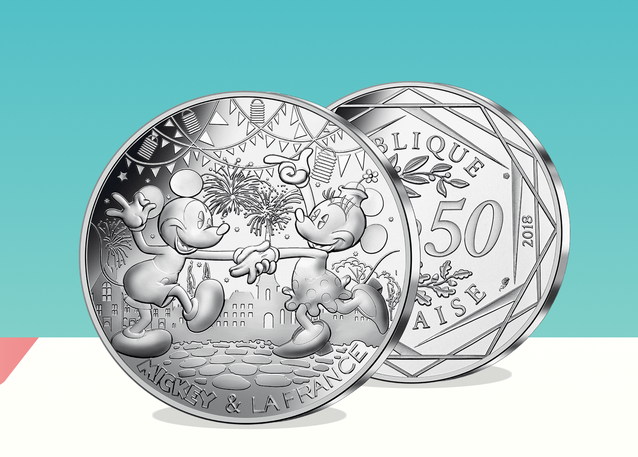 Mickey is placed in front of a variety of iconic French locations including the Eiffel Tower, the castles of the Loire, the cliffs of Etretat or Mont Saint-Michel. The €50 coin also features Minnie Mouse, who shares an anniversary with Mickey Mouse.